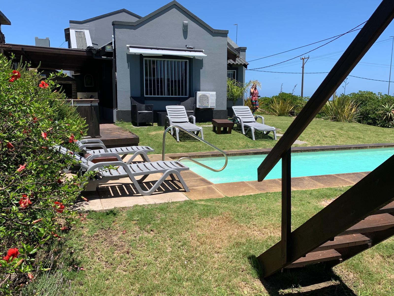 Piscina con reposeras y muebles de exterior