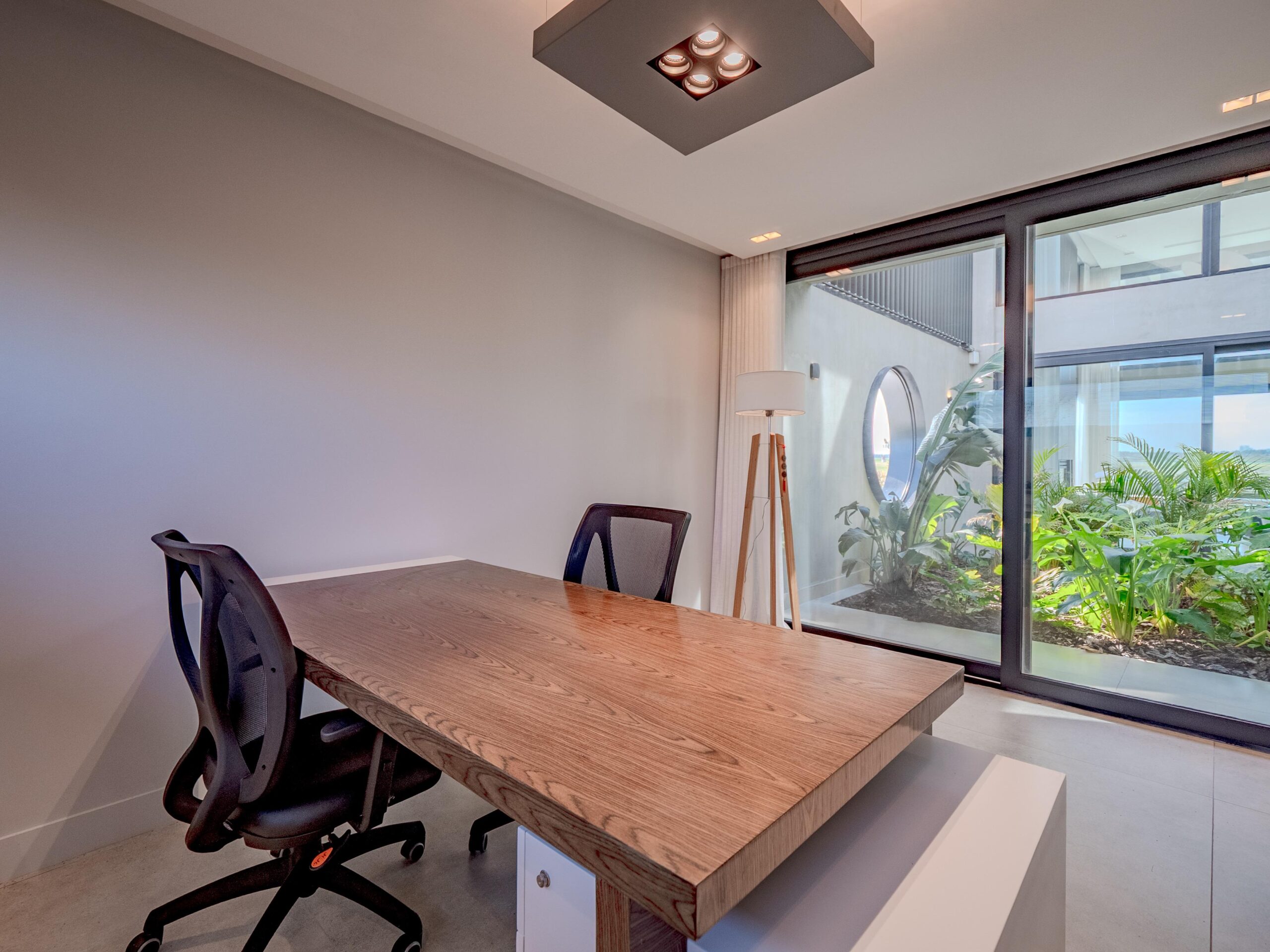 Desde aquí se accede a la oficina, escritorio, o departamento de visitas, con baño completo e independiente de la casa.