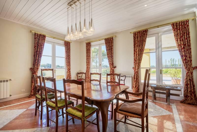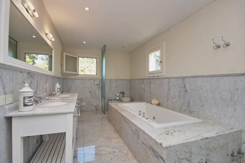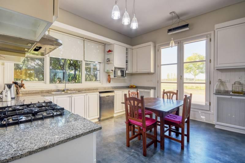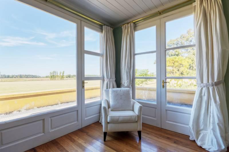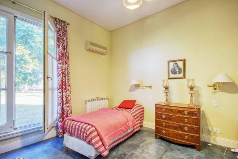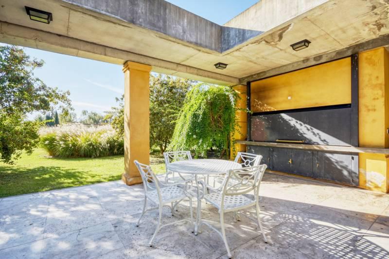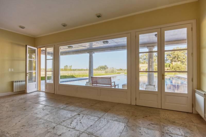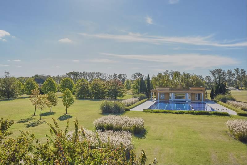 La residencia de estilo Neo-Clásica, construida hace diez años durante el surgimiento de esta contemporánea zona de Polo, cuenta con vista plena a la cancha principal y se encuentra rodeada de añosos árboles y forestación en abundancia acorde a la ubicación.