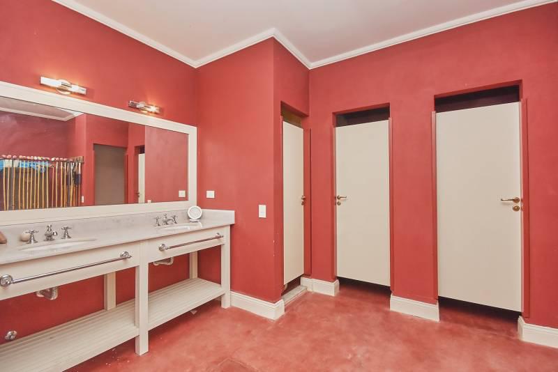 En planta baja se encuentra el living, comedor, family y galería con vistas a la cancha principal; y la cocina, lavadero, vestuarios, galería con parrilla y siete habitaciones con seis baños distribuidos en el contra frente.